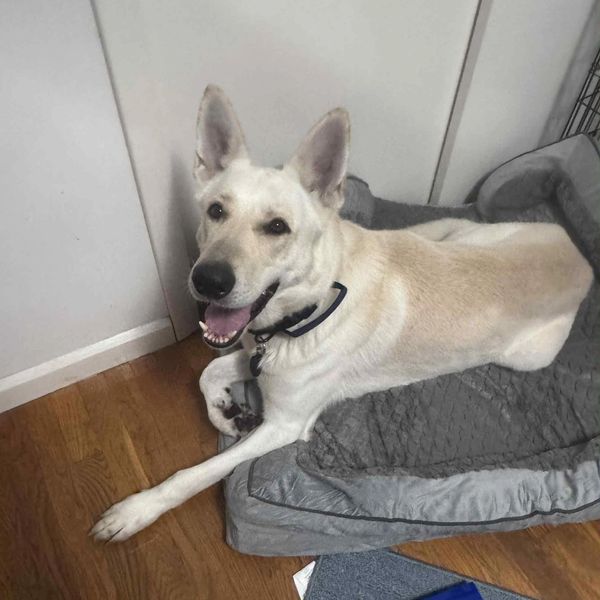 We believe he is 1 to 1.5 yrs old with a puppy personality. He is large,
